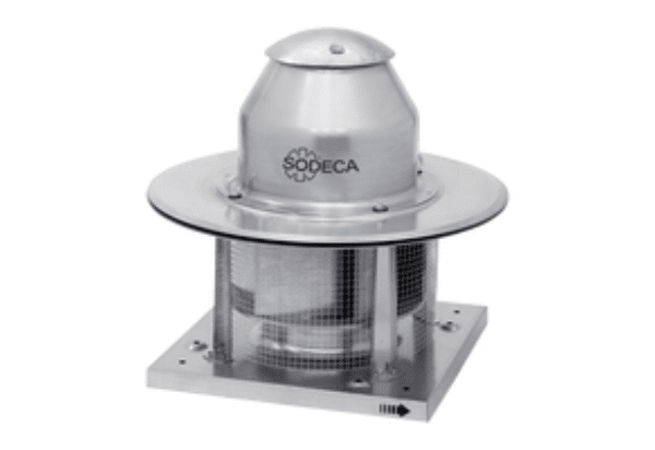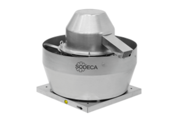 400V. Takfläkt för +200°C kontinuerlig drift eller +400°C/120min vid evakuering av brandgaser. Motor utanför luftströmmen. Luftflöde från 1800m³/h och upp till 14000m³/h.