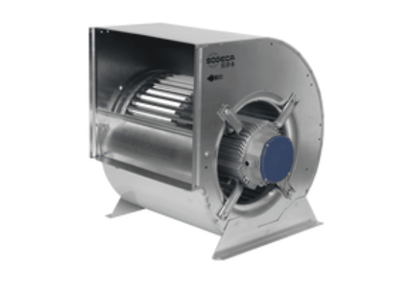 Remdriven radialfläkt med dubbelt inlopp.Bakåtböjda skovlar i fläkthjul för system med medelhögt tryck där låg ljudnivå är avgörande. Stabil konstruktion.