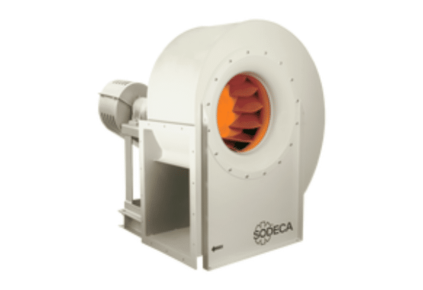 Radialfläkt för utsug av ren eller lätt dammig luft med max +120°C på mediet, Bhjul med delvis självrensande skovlar.