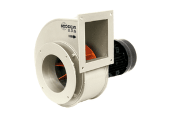 400 V, IP 55, Radialfläkt i plast(PP) för utsug av korrosiva gaseroch viss fuktbemängd luft.