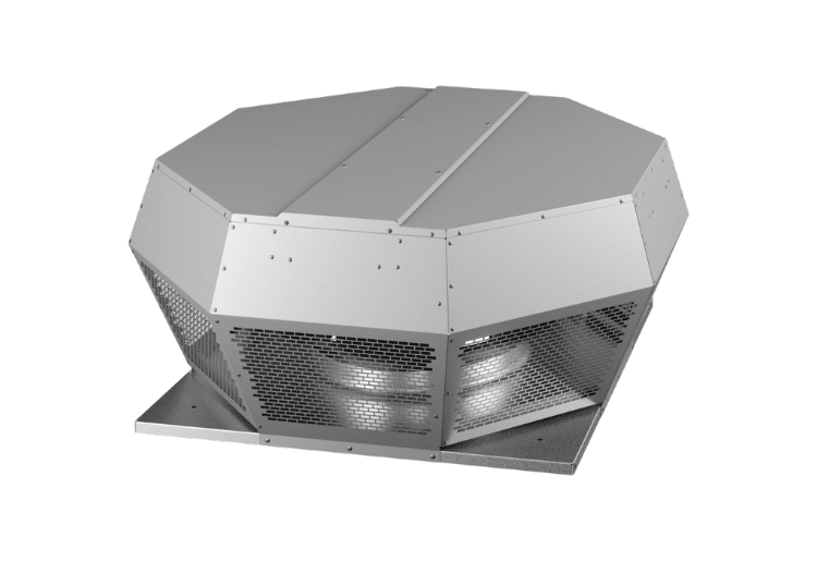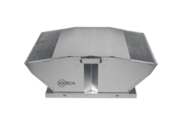 Takfläkt DVN/DVNI för storköksventilation med eller utan ljuddämpning. Swing-out model.